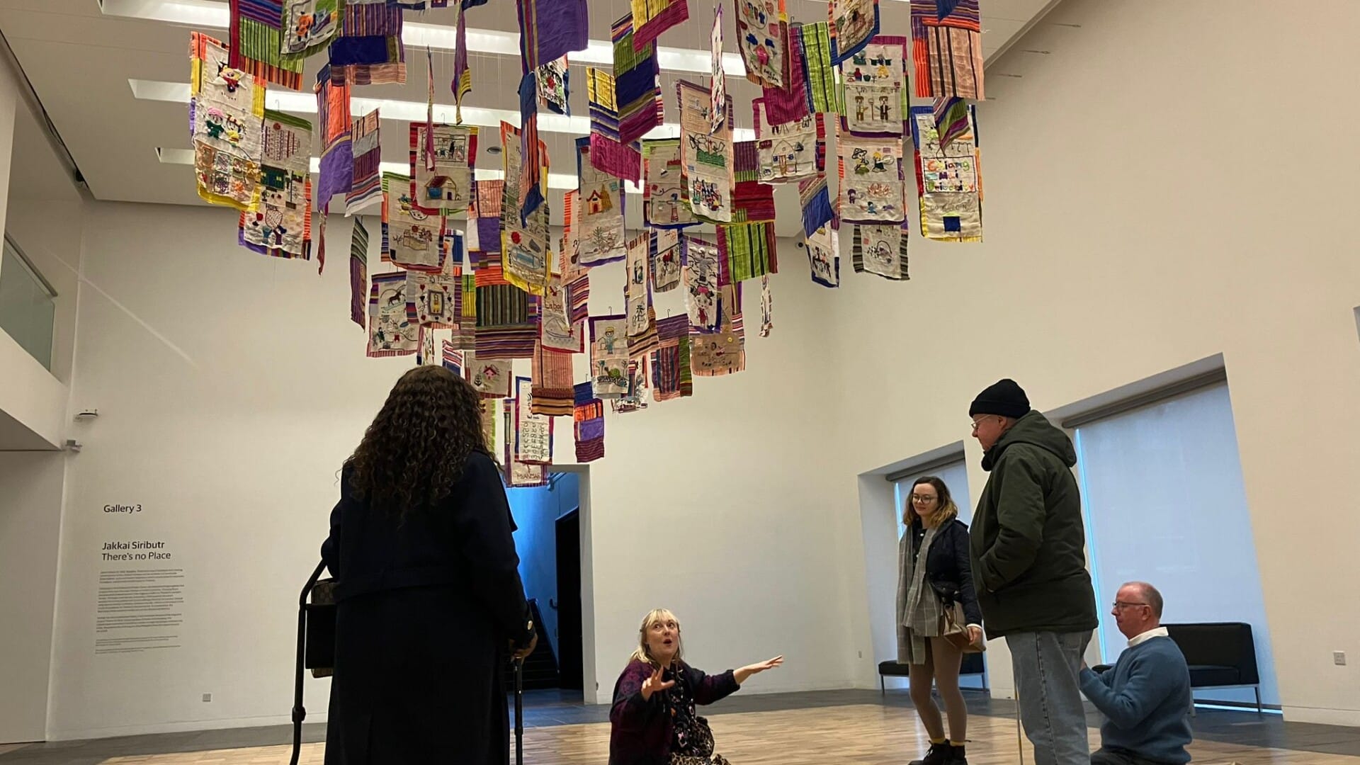 In December, Beswick and Dukinfield based craft groups joined up for a Christmas trip to the Whitworth. Where Amy, Senior Curator at the gallery, kindly gave us a tour of Jakkai Siributr’s “There’s no Place”.
