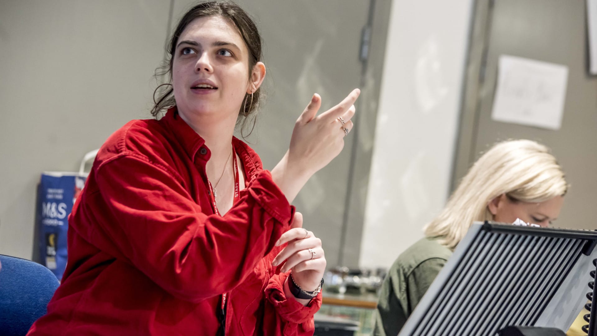 Then it was time to start singing! Ben and Livi (the Musical Supervisor and MD) led the cast in a vocal warmup before starting to teach the cast the big number at the end of Act 1, naturally titled Spend Spend Spend. Ben talked about the re-arrangement he’d done on the show’s music for this revival and how he’d really leant into the time period each piece was happening in, so making the songs set in the 60s have more 60s style vocals and orchestration and so on, it was so interesting to learn about the level of detail and aesthetic put into the music. That evening I listened to the original cast recording and it was really clear where Ben had sharpened and elevated the original for this new version. The afternoon was dedicated to learning Spend Spend Spend, as the number is almost seven minutes long and features lots of difficult rhythms and complex harmonies. Throughout, Sarah the DSM was calling different cast members out to the room to go for costume fittings and they would catch up on what they had missed from the others totally seamlessly when they returned. Working the costume fittings around the rehearsal seemed like a very well orchestrated dance. By the end of the day, the cast had finished learning Spend Spend Spend and quickly learnt the vocals for the Prologue as they are musically very similar. I spent the rest of my week humming Spend Spend Spend as it’s just so catchy!