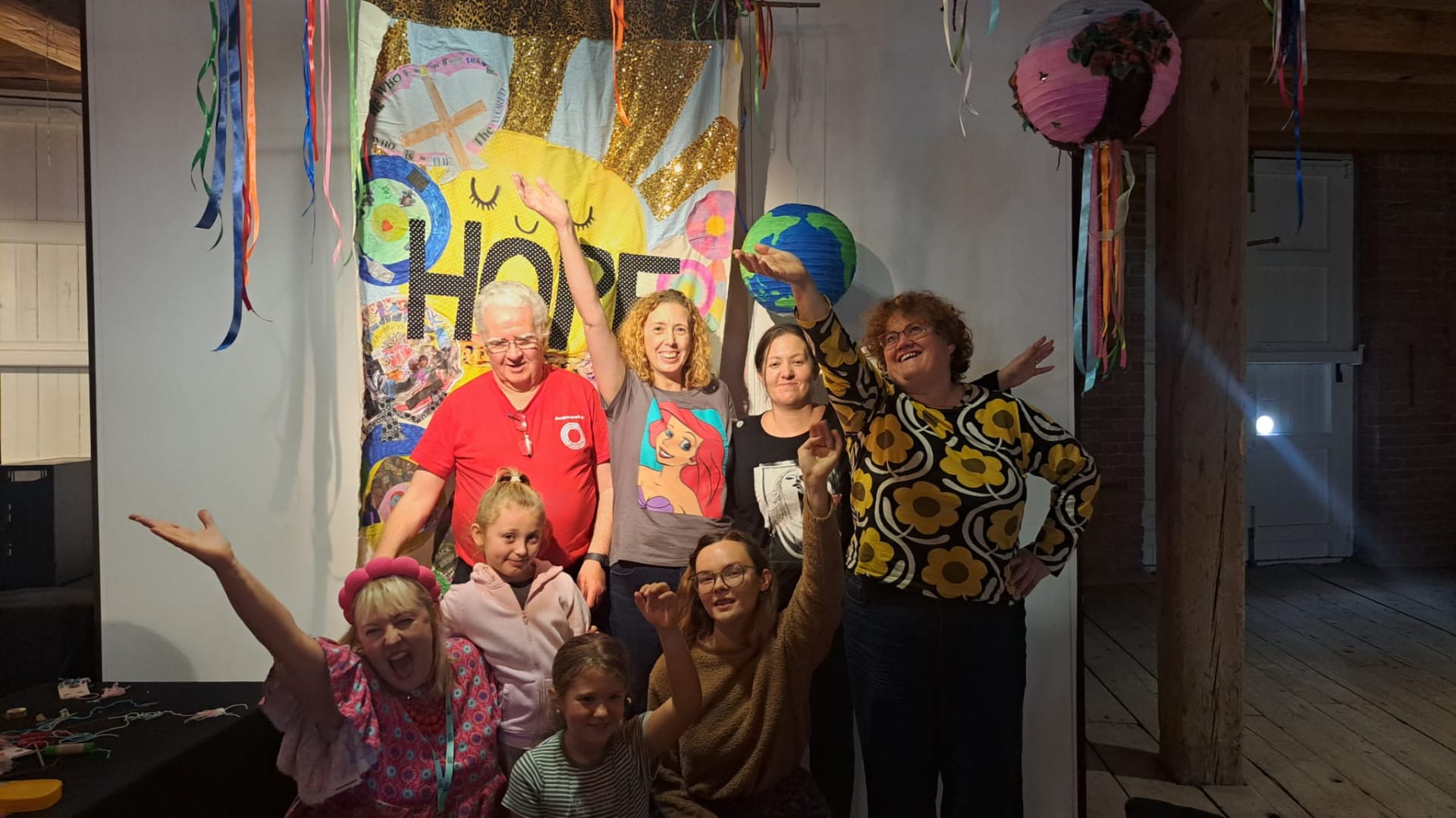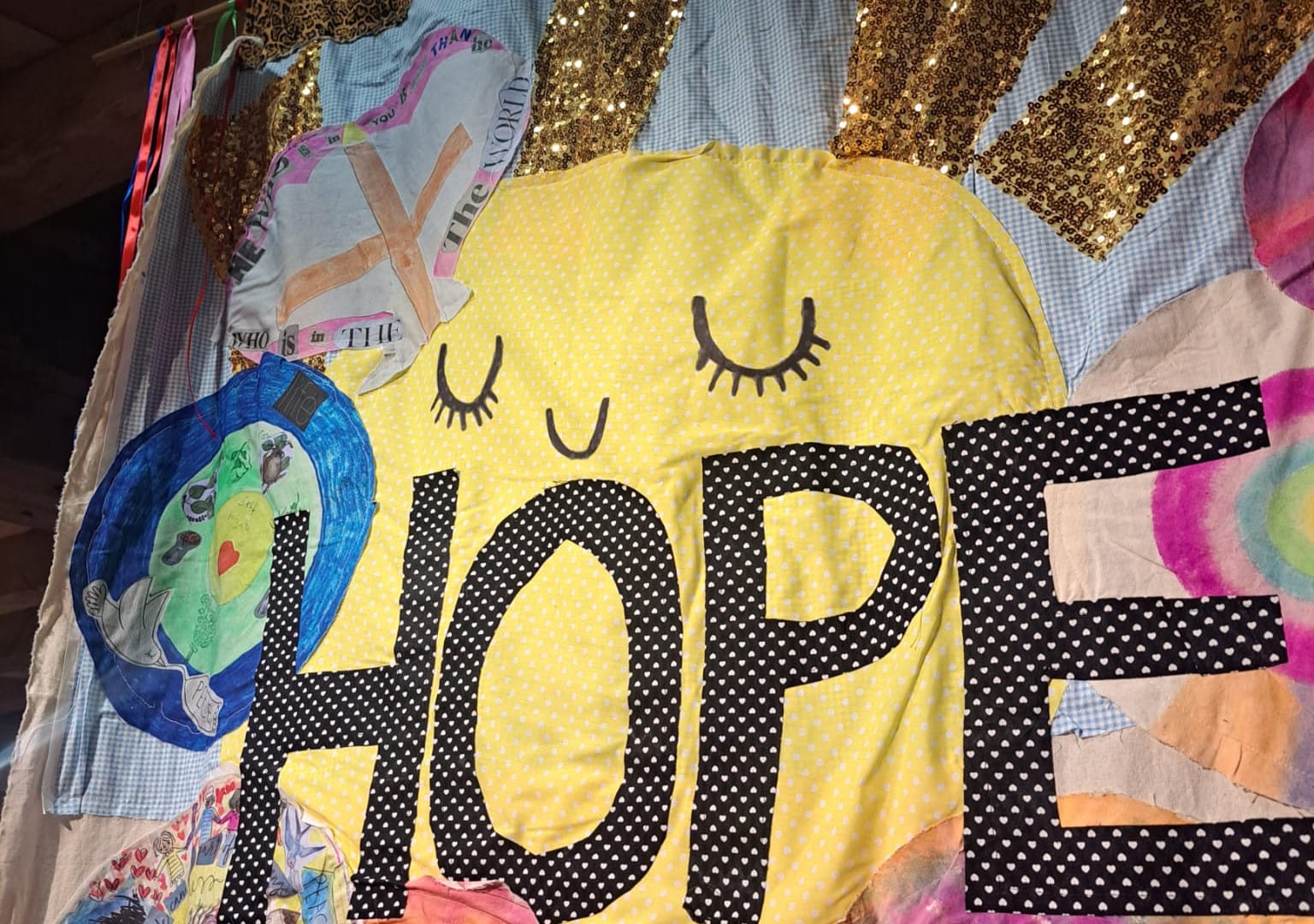 This October Chatty Craft created an Exhibition on the theme EXTREME HOPE, displayed at the Museum of Science and Industry. Alongside lanterns of hope, they made a banner which reads: HANDS HOLDING HOPE AROUND A BIG BEAUTIFUL WORLD. The Exhibition is now on permeant display at Beswick Library.