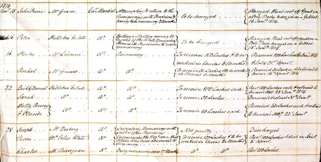 [16] Court records from Dominica, January 1814, CO71/5. Available: https://www.nationalarchives.gov.uk/education/resources/slavery/source-1/.